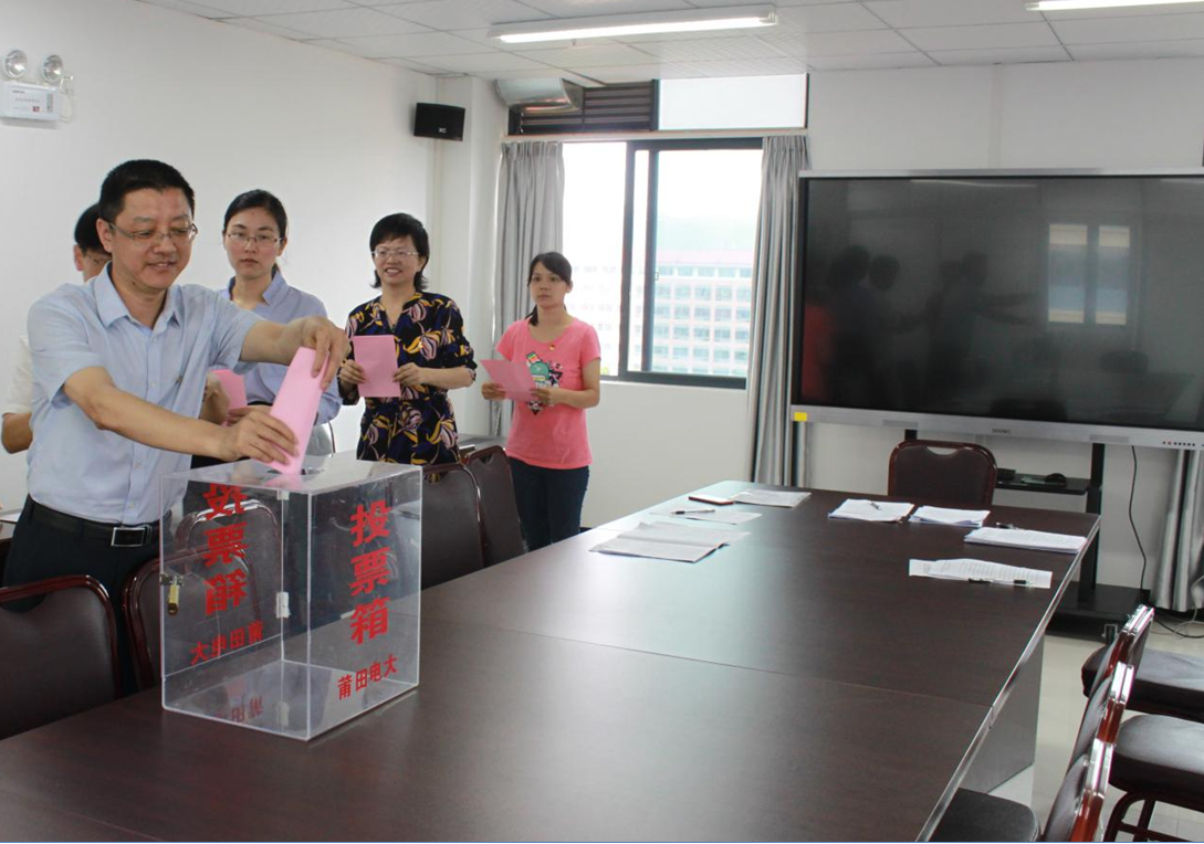 7月3日上午,福建广播电视大学莆田分校机关党支部召开换届选举大会,主要议程是听取委员会工作报告,选举产生新一届委员会。莆田电大党委书记林荣斌、副书记苏健,以及党支部全体党员出席大会。会议由苏健副书记主持。