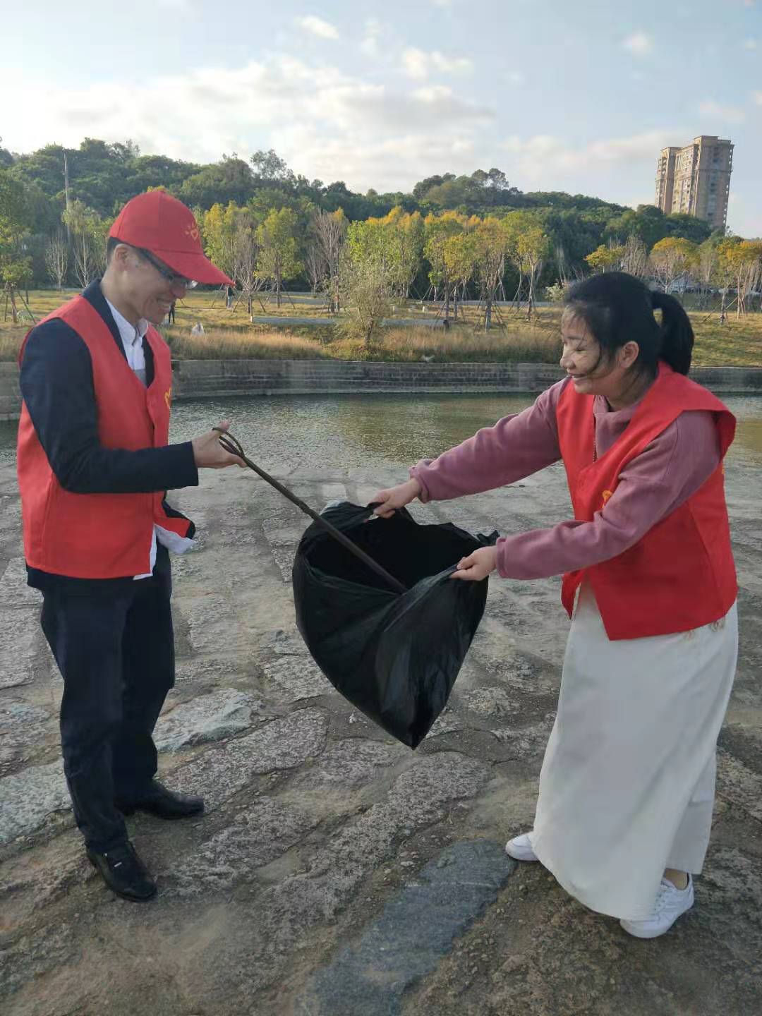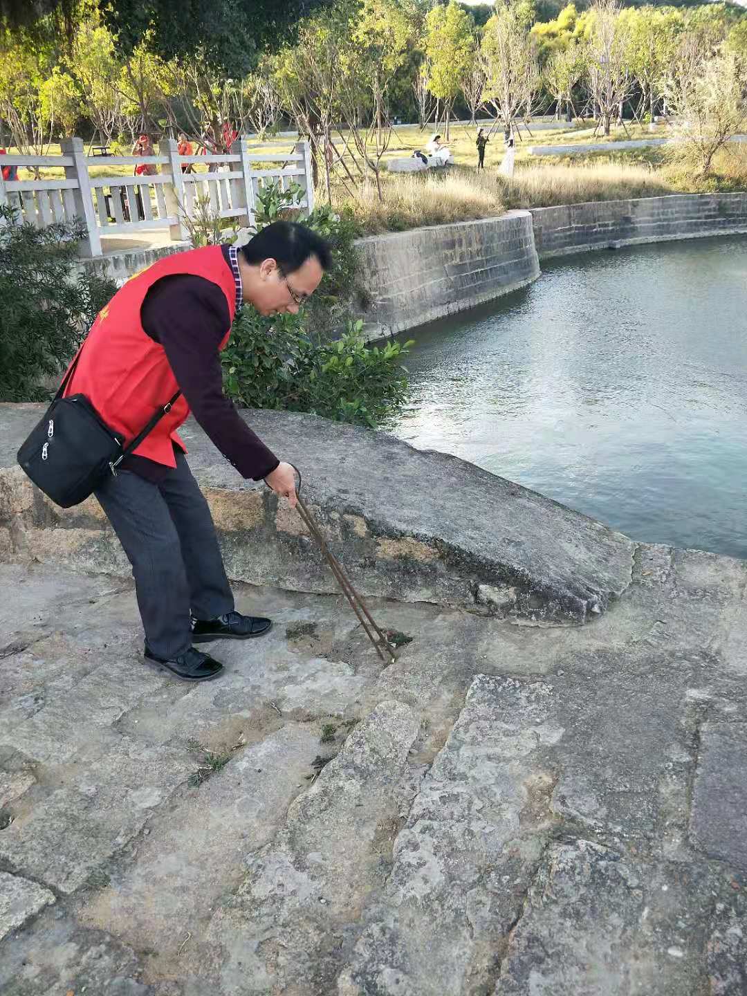 11月29日,在林荣斌书记的带领下,全体志愿者到木兰陂公园开展以“保护母亲河,建设和谐家园”为主题的专项志愿服务活动。活动中,志愿者身穿志愿红马甲、头戴小红帽穿梭在公园的树林里、绿荫下,鲜红的马甲点缀在万木丛中,为公园带来了勃勃生机。志愿者手拿火钳和垃圾袋,将公园内的果皮纸屑、烟头、矿泉水瓶等各种垃圾捡拾得干干净净。志愿者们也呼吁到公园内游玩的市民自觉把垃圾带走,保护好我们赖以生存的环境卫生。