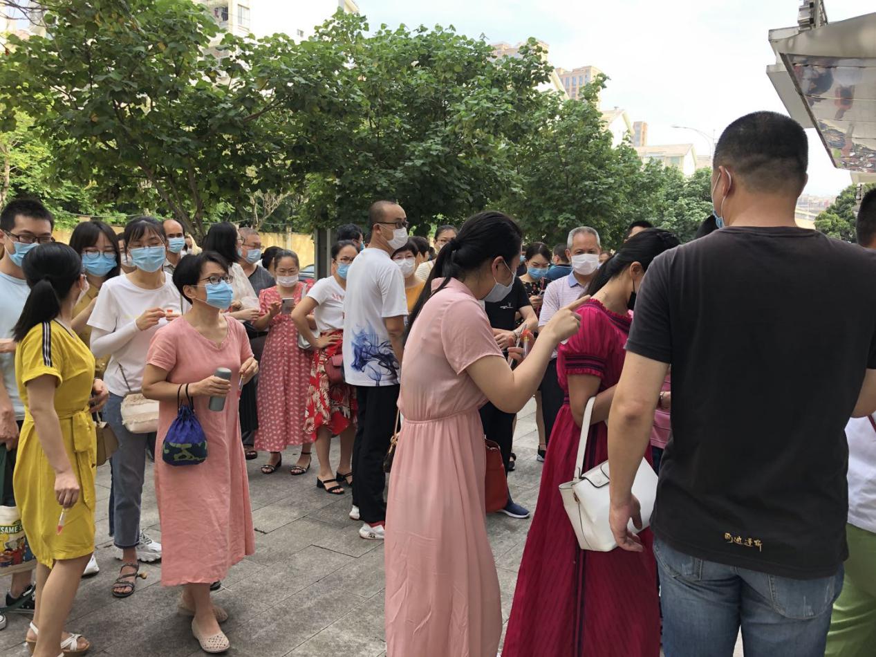 考试期间校门口安保人员及一名教师全程佩戴口罩等防护用品,对进出考试进行体温检测、查询八闽健康码及行程卡,并做好登记工作