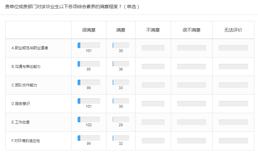 4、用人单位对毕业生各项综合素养的满意度为100%。