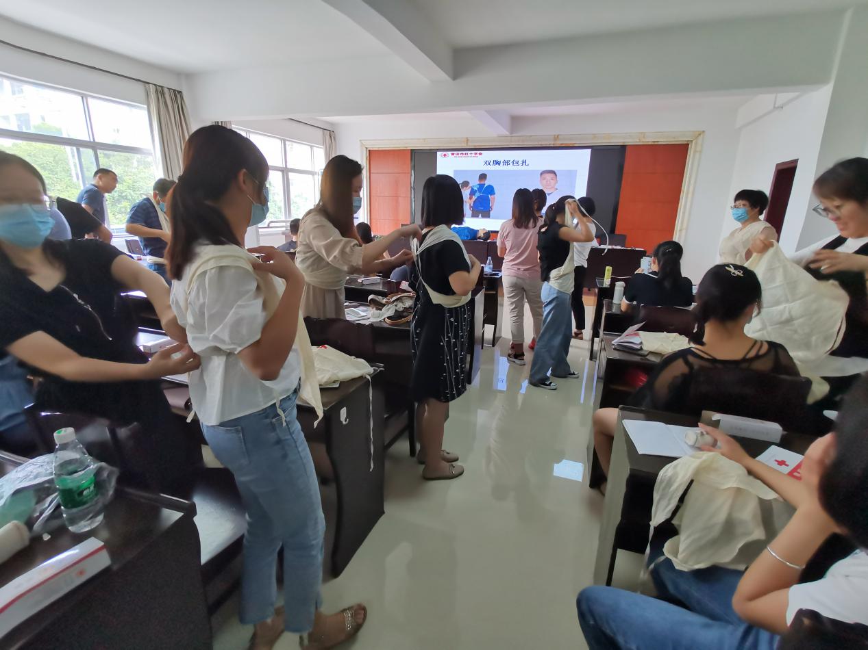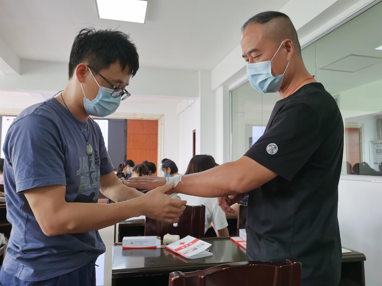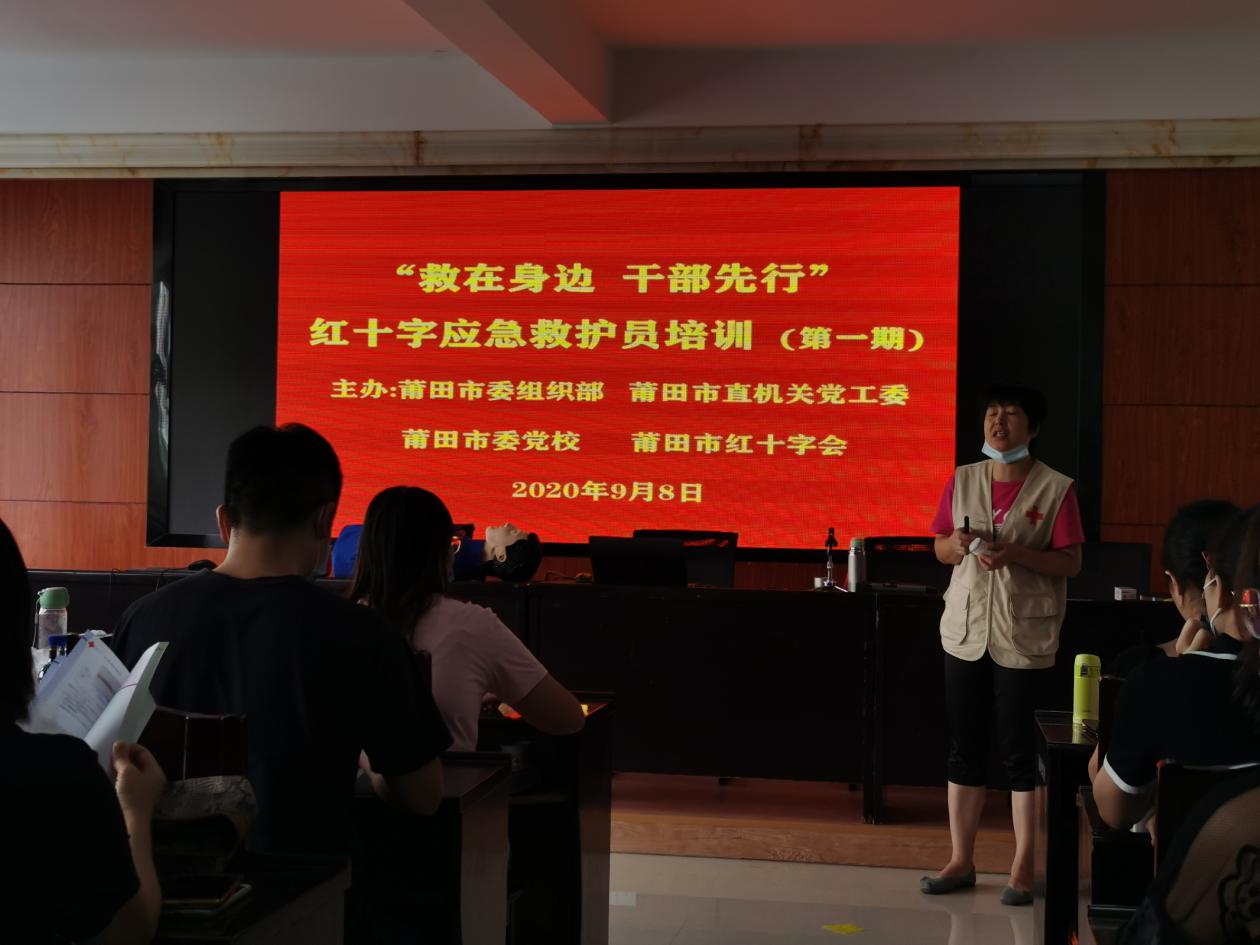 市委组织部、市直机关党工委、市委党校、市红十字会联合开展“救在身边、干部先行”红十字应急救护培训活动,并于2020年9月8日开设第一期救护员培训。我校由总务处林森老师参加培训。在现场聆听附属医院急诊科主任的心脑血管疾病讲座与心肺复苏、AED使用、绷带和三角巾包扎等一系列培训后,所有参加培训的准救护员们一一进行心肺复苏考核、创伤包扎考核,合格后由红十字会授予救护员证书。