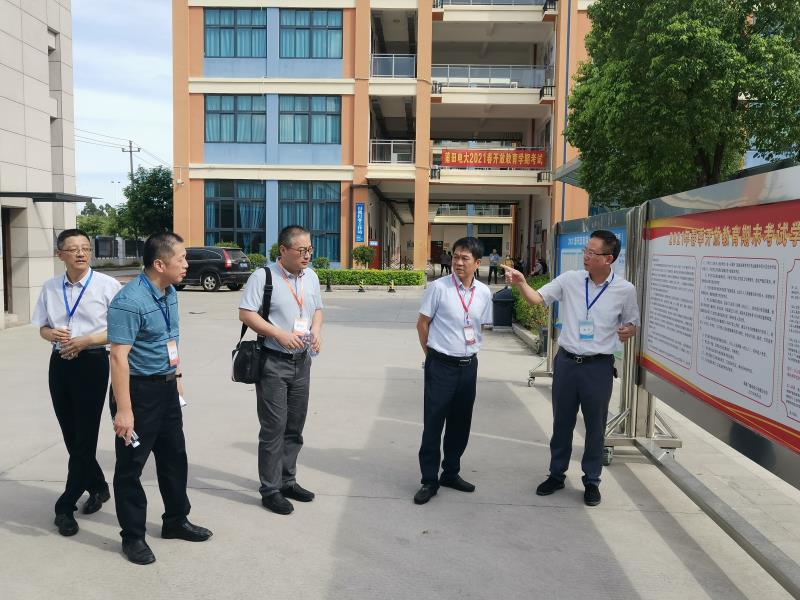 莆田电大开放教育2021春纸质期末考试于7月10日至11日进行。7月11日下午,福建开放大学校长吴国荣在莆田电大党委书记林荣斌、副书记苏健及巡查员陈明阳的陪同下,莅临考场巡查考务工作。