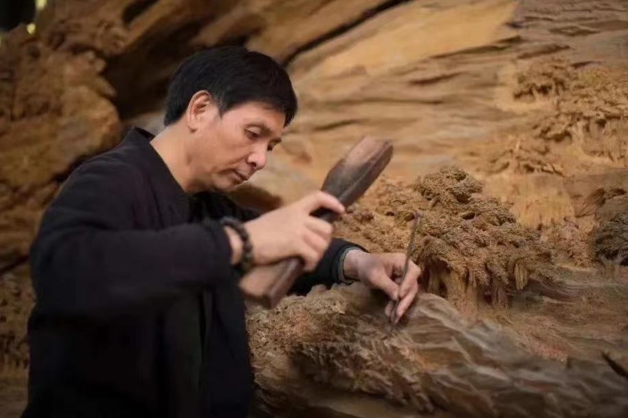 上午九点,在木雕艺术馆,郑春辉大师带领党员们参观了艺术馆内各个展厅的作品,详细讲述了为庆祝建党100周年创作的《光辉闽西》、荣获第四届“艺鼎杯”中国木雕现场大赛金奖的《乡情悠悠》、根据宋代王希孟同名山水画而创作的《千里江山图》以及2013年载入吉尼斯纪录、世界最长的木雕巨作《清明上河图》等作品的创作历程、构思和创作技法,以自身创作经验声情并茂地为党员们讲解了如何用中国山水画的构图,融入中国古典诗词等文化元素进行木雕创作,在继承传统木雕工艺的同时,大胆开拓创新,使木雕作品兼具技法之美、山水田园之美和文学诗歌之美。党员们为大师的高超技艺所惊叹,更是被大师心无旁骛、精益求精的匠心精神所深深感染和折服。