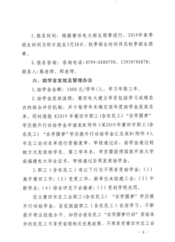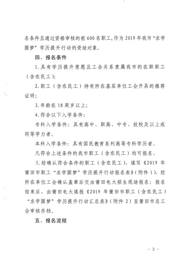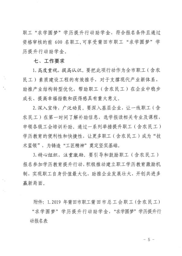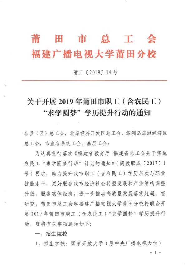关于开展莆田市职工(含农民工)“求学圆梦”学历提升行动的通知