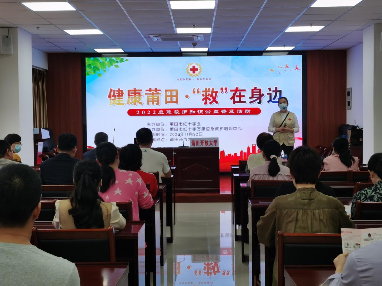 校领导高度重视研究部署,组织专人负责筹备培训相关事宜。红十字会李圆婷老师做了应急救护知识公益普及讲座。讲座结合最近的案例,以案说法,深入浅出地讲解了第一时间救护和使用AED的重要性,以及日常生活中应注意的救护细节等知识。讲座由莆田开放大学党委副书记苏健主持,学校全体教职工以及后勤物业人员参加了培训。