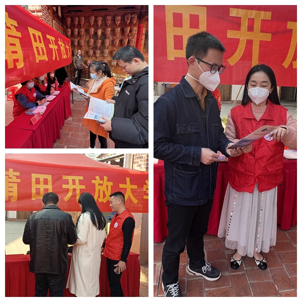 为进一步弘扬雷锋精神,更好服务地方经济社会发展,尽快把省教育厅、省总工会“农民工求学圆梦”优惠政策传达到千家万户,3月3日,莆田开放大学组织学雷锋志愿者到兴化历史文化街区开展招生宣传和学雷锋志愿服务活动。