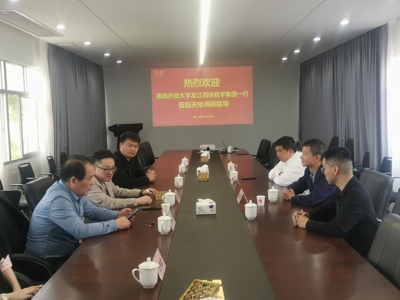 4月3日下午,莆田开放大学校长李新洪携江西“伴我学”集团总裁应辉一行到天桂(福建)食品有限公司开展考察交流。