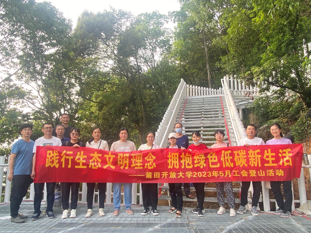 为倡导“绿色环保、文明健康”新风尚,发扬和谐发展的团队精神,体现教职工积极向上、昂扬奋进的精神面貌,5月26日下午,工会组织“践行生态文明理念 拥抱绿色低碳新生活”登山活动。教职工们互相鼓励,互相帮助,携手共进,勇攀高峰,呈现出一派充满活力和生机的状态,既释放了工作压力,舒缓了身心,又陶冶了情操。