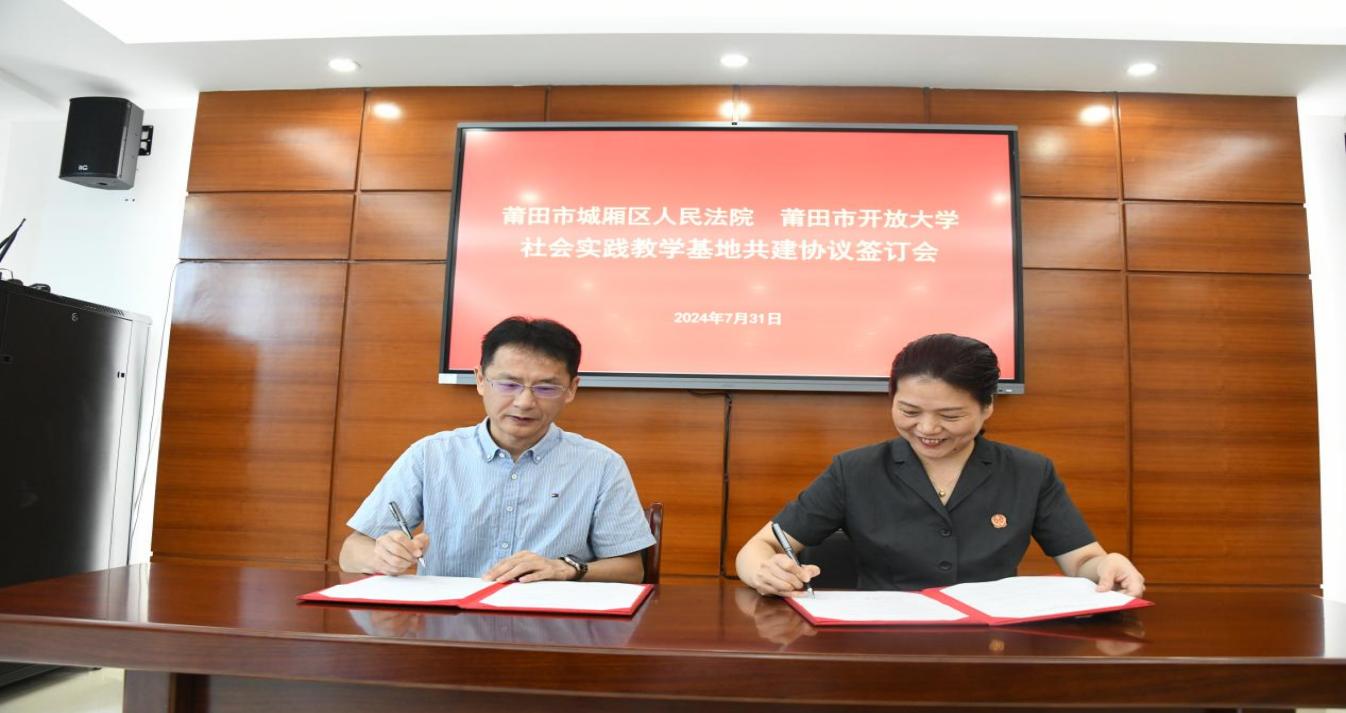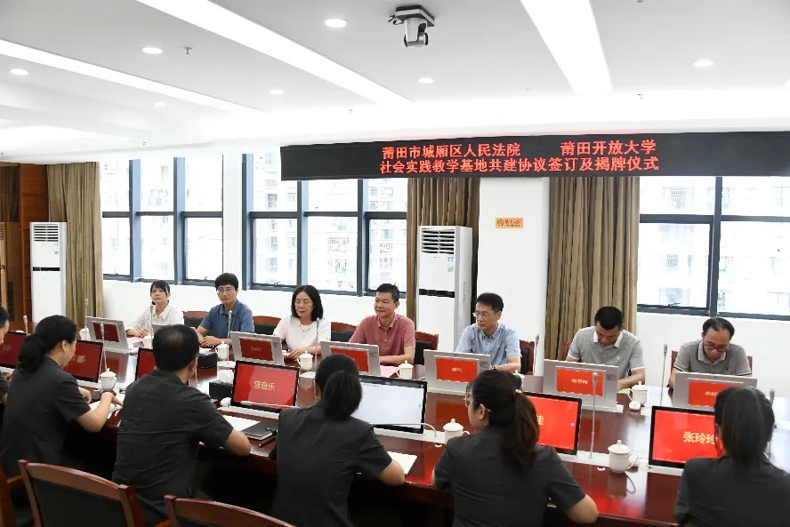 仪式上,城厢区人民法院党组书记、院长曾奋乐对莆田开放大学一行表示热烈欢迎,他肯定了共筑法治实践基地的意义,强调双方共建要以弘扬社会主义法治精神为己任,搭建法治教育实践平台,引导学生增强法治意识,树立法治信仰,做社会主义法治的忠实崇尚者、自觉遵守者和坚定捍卫者。进一步挖掘司法审判资源的“富矿”,为院校合作提供更多好素材,发挥“一个案例胜过一打文件”的作用,为法治人才培养、法治社会建设提供生动丰富的“源头活水”。曾奋乐院长最后表示要以签约为起点,充分发挥各自的优势资源,创新合作方式,开启新征程、开创新局面。