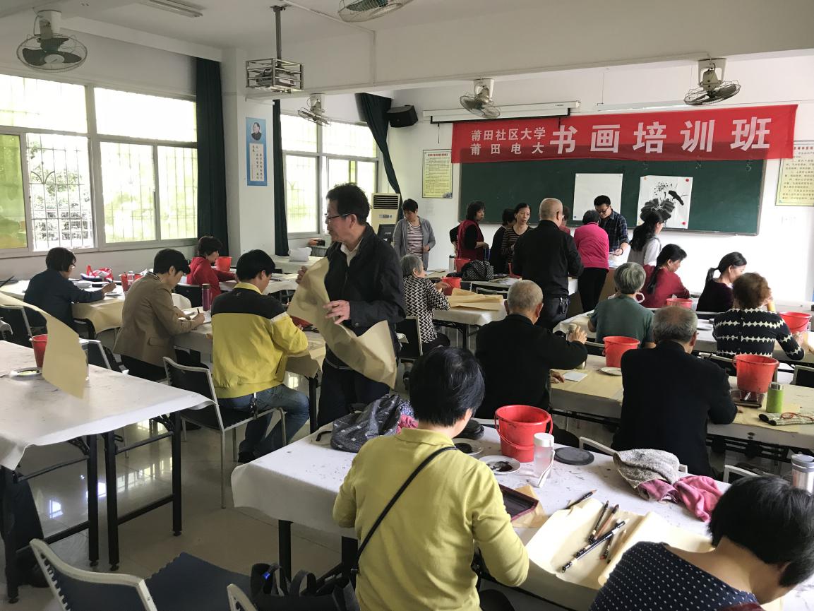 为提高社区居民的精神风貌,增加社区居民的生活乐趣,丰富退休老年人的晚年生活,本着“活到老,学到老”的理念,4月19日下午,在莆田电大二楼多媒体教室开展公益国画培训活动,由艺术底蕴丰厚的许老师为国画班学员授课。经过这几个学期的学习,大部分的学员由零基础到现在都有较高的绘画能力,理论、实践和艺术鉴赏能力都进步巨大。尽管书画班的学员有的已是银发鹤颜,甚至年愈古稀,但是他们对艺术孜孜不倦执着追求的精神,令人敬佩和感动。